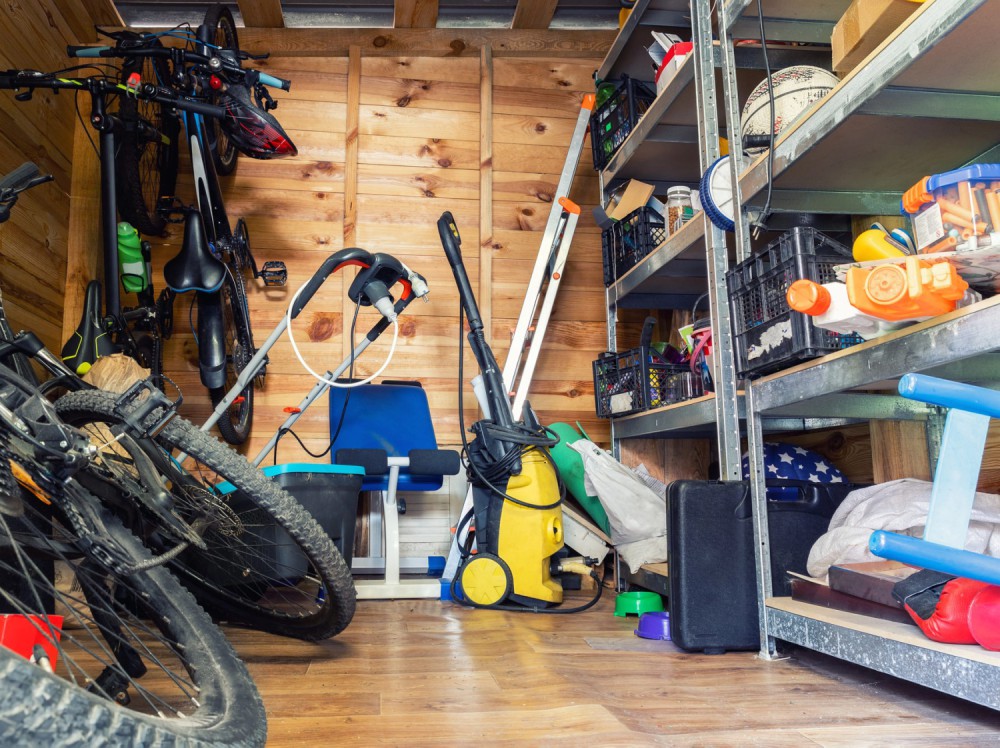 It may seem simple, but the right storage system will change your life. Use clear, and labelled, plastic bins for smaller items; hanging nets for balls or pool toys; a storage bench to provide seating as well as a spot to put things away; and magnetic hooks for metal tools.