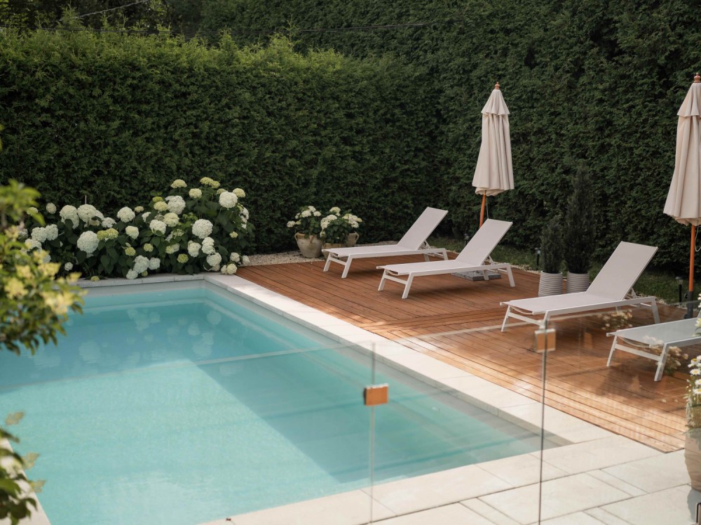Deuxièmement, il est toujours important de se renseigner sur les règlements de la municipalité lorsqu’il s’agit de projets de plus grande envergure, que ce soit pour un patio, des clôtures et l’installation d’une piscine, surtout. Par exemple, si vous avez comme projet d’installer une piscine creusée, il y a certaines règles à suivre et certaines sont plus évidentes que d’autres. Le format d’une piscine peut aussi beaucoup jouer sur l’aménagement de votre cour puisque ça prend de l’espace et ça nécessite de plus gros travaux. Nous avons une piscine 12x24 et j’adore sincèrement le format, ce n’est ni trop gros ni trop petit. Si vous avez une plus petite cour et que vous voulez tout de même une piscine creusée, je trouve personnellement que les petites piscines sont de plus en plus tendance et il est possible de créer un bel aménagement aussi en y ajoutant des plantes et des fleurs autour. Ça donne un look plus chaleureux et intime.