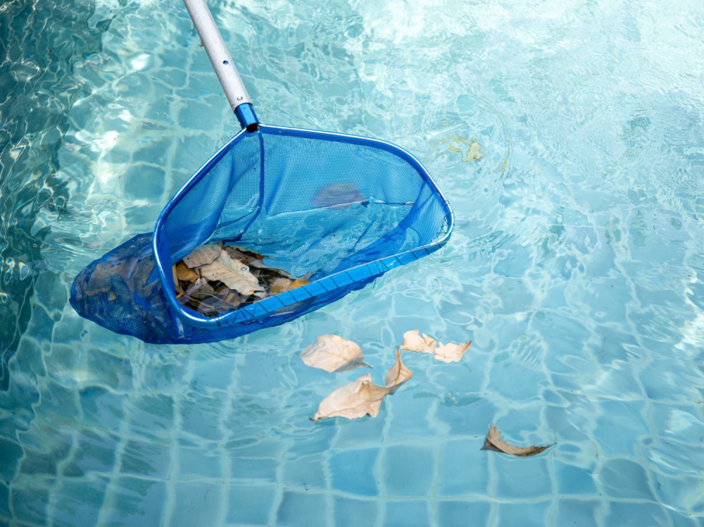 • Ensuite, utilisez l’épuisette pour enlever les débris de feuilles et autres détritus qui sont tombés dans la piscine.